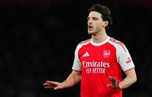 James Benge报道指出:“在阿森纳的公开训练课上,没有见到赖斯的身影。受伤的四名球员:厄德高、萨卡、廷伯和卡拉菲奥里仍然缺席。”