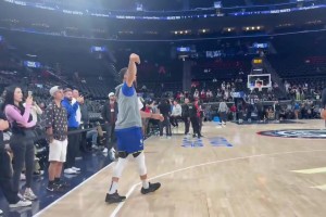 下一篇: 金州拉文上线~库里赛前秀自抛自扣!双臂“霸气”挂筐😂